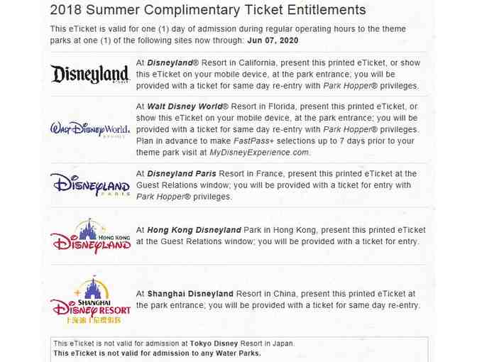 3 Disney Park Hopper tickets (you can go in and out of any of the Disney Parks all day long) valid through 6/7/2020, with no blackout dates. Valid for Walt Disney World, Disneyland, Disneyland Paris, Disneyland Hong Kong, Shanghai Disneyland. Not valid for Tokyo Disney or the water parks in Florida. Able to use via the Disney app to prebook fast passes and connect to magic bands, ect.