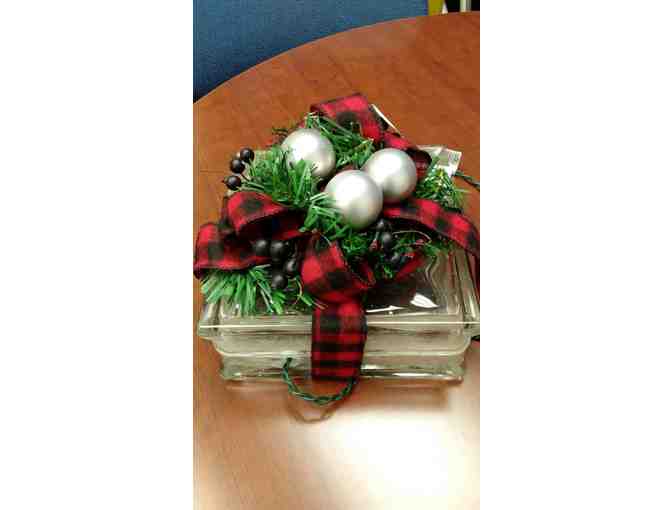 Enjoy this lighted holiday centerpiece from Becky's Floral & Gift Shoppe - Your Professional Local Florist in Mankato. Dimensions: 7.5" Square, 6" Tall