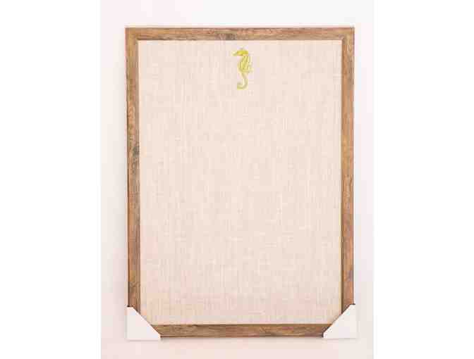 Keep your home organized with a lovely large bulletin board with burlap and a green seahourse accent.
