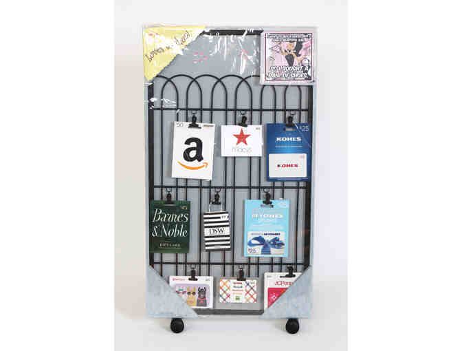 For the person who "loves to shop" this is the perfect gift! Numerous gift cards are displayed on a decorative wall frame!