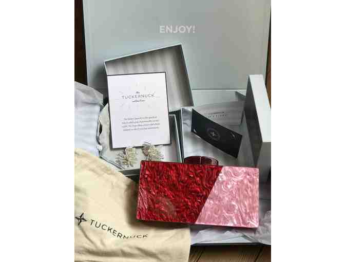 With a namesake derived from a small island tucked off the Nantucket coast, Tuckernuck embodies a fun and nostalgic spirit. As soon as you put on these Tuckernuck silver firework earrings, you will shine! Add in this classy two toned clutch along with another item of choice with your $200 gift certificate.