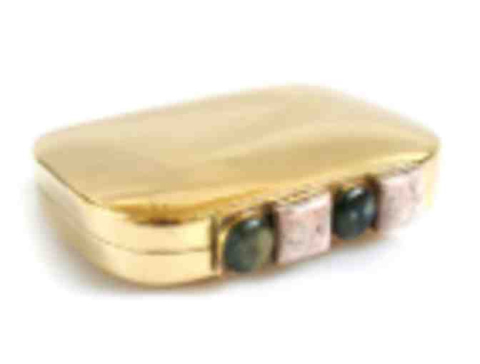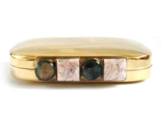 Southern designers Lee Addison Lesley and Katherine Weeks Mulford founded Addison Weeks with versatile, high-quality fashion jewelry at the forefront of their creations. Recently listed as one of Oprah's Favorite Things in 2016, the brand has developed a loyal following. The Jenkins Clutch is a handmade lacquered brass clutch lined with navy velvet and embellished with pink opal and labradorite semi precious gemstones. This the perfect accessory for any special occasion!
