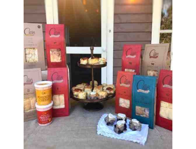 The Handmade & Hand Mixed offers everything that’s cooling on the racks in the Charleston bakeshop—one dozen each of traditional Charleston flavors! Sample them all—from Buttermilk, Cheese and Chive, Country Ham and Cocktail Country Ham to Black Pepper Bacon, Cinnamon, Iced Blueberry and Sharp Cheddar. Also included are a pack of Charleston-style Shortcakes and two kinds of Pimento Cheese for spreadin’!