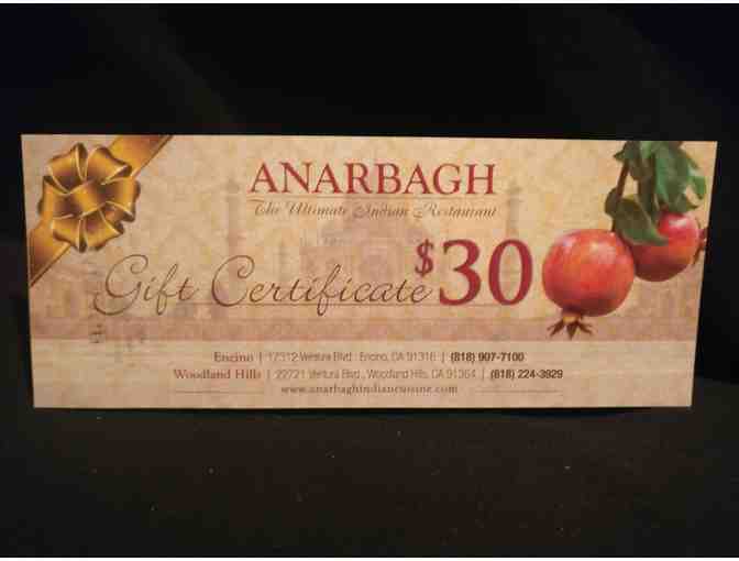 Gift Certificate Dining--$30 Gift Certificate Anarbagh Restaurant, Encino/Woodland Hills