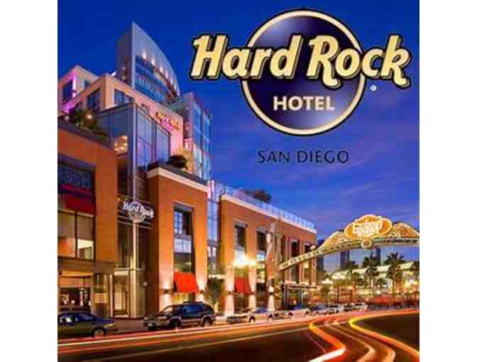 Gift Certificate for a one-night stay in a Hard Rock Studio at the Hard Rock Hotel San Diego. Also includes breakfast for two people at Mary Jane's.