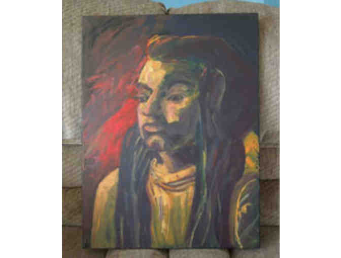 Denise Wall, exhibiting member of the Providence Art Club has donated a framed, multi media wired and ready to hang 18 x 24 "American Indian"