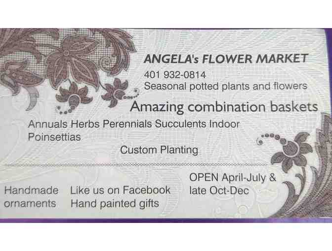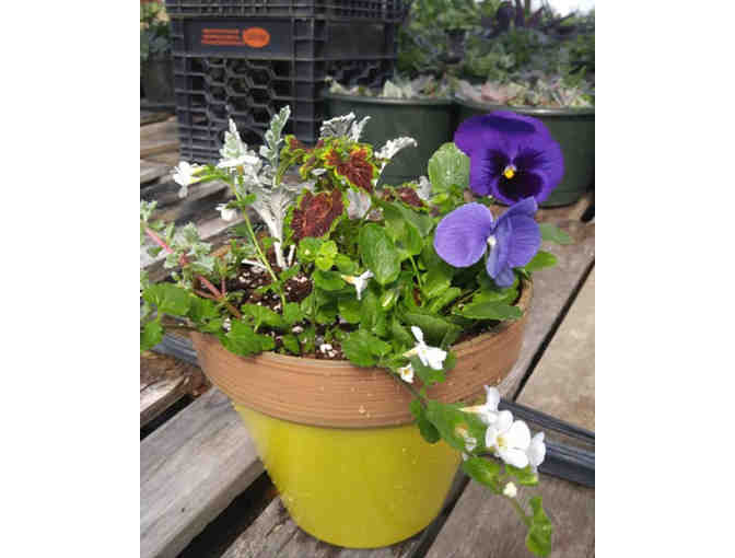 Angela Dyson, owner of Angela's Flower Market has donated this lovely yellow planter with a colorful mixture of annuals. Angela's Flower Market open's this season on April 15th.