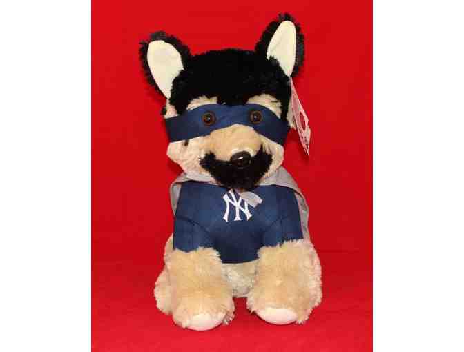 Everybody needs a hero and this cute pup can be yours! Bright brown eyes shine with pride through a blue mask whether the Yankees are winning or losing. Of course, this fiercely loyal plush German Shepherd prefers winning and believes this superhero outfit complete with gray Cape and blue Yankee shirt with a white NY on the chest will send them straight to the World Series!