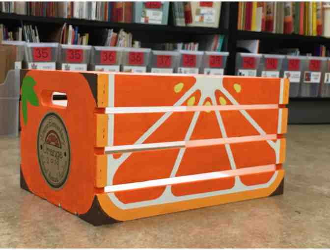 Store your child's toys our artwork in this adorable orange wooden crate by Alamo 1st graders!