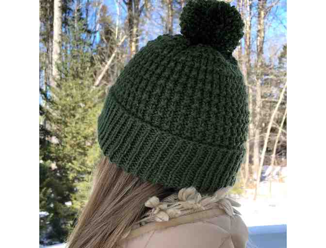 Beautifully handknit superwash, soft wool hat by local Kennebunk crafter and volunteer Lynn McCarthy.