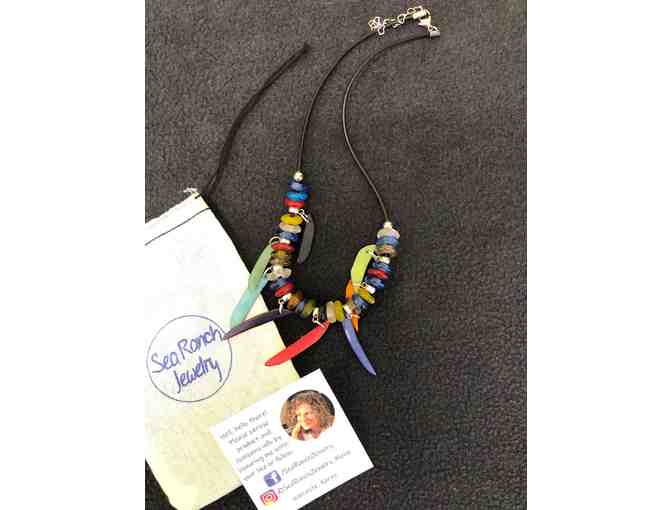 Sea Ranch Jewelry colorful necklace with leather cord.