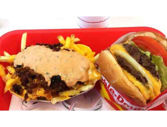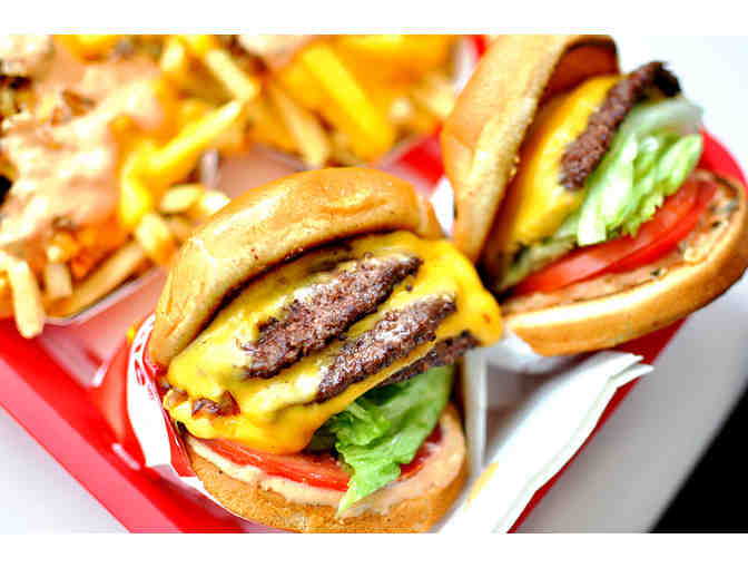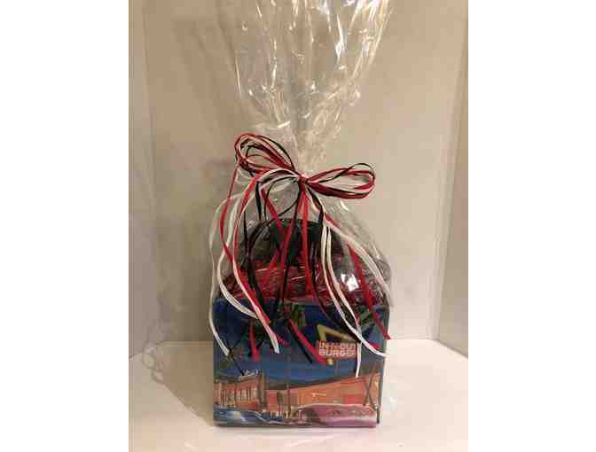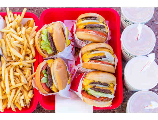 The winning bidder will receive (8) Gift Cards for a burger/fries/beverage, a notepad, a reusable beverage cup with straw, a hat, a t-shirt and a pencil courtesy of In-N-Out Burger!