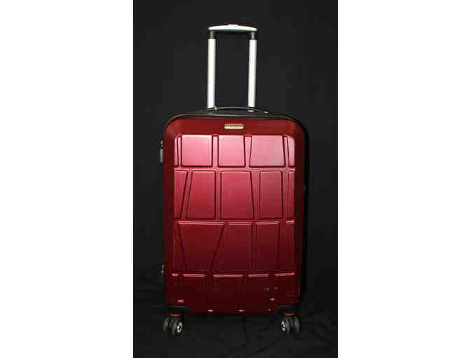 Retractable handle, expandable, zippered divider with mesh pocket.