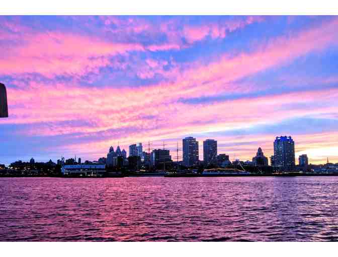 Enjoy the Philadelphia skyline from a new perspective. View the many historic ships and sites along the Delaware River, including the USS New Jersey, Ben Franklin and Walt Whitman bridges, SS United States, SS Olympia and more.