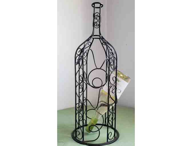 Beautiful wine rack and a bottle of Cabritz white wine imported from Portugal