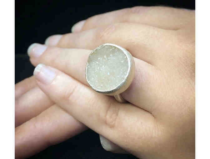 Sterling White Druzy Quartz Ring
