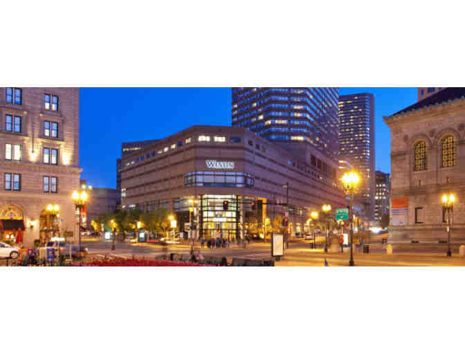 1. Certificate for a one night stay at the Westin Hotel Copley Place in Boston with breakfast for two in The Huntington Restaurant, complimentary in room Wi-Fi and access to the Westin Workout Health Club Facilities. Room rate and tax are included.