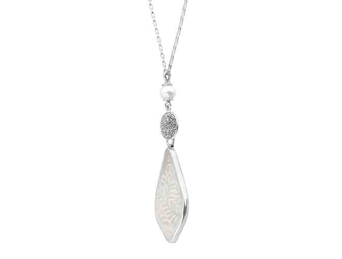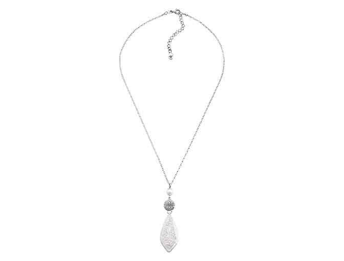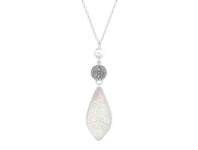Pendant: Take the plunge into one of Indonesia's most lush and exotic islands, teeming with sun and new adventures. This sleek pendant features a natural etched shell suspended from a sterling silver filigree with a freshwater pearl accent. This piece is part of our Balinese Collection, inspired by the beauty of Southeast Asia and handmade in Bali using ancient silversmith techniques. Pendant measures 2 11/16 by 11/16 inches and features an 18-inch cable chain, plus a 2-inch extender for adjustable length.