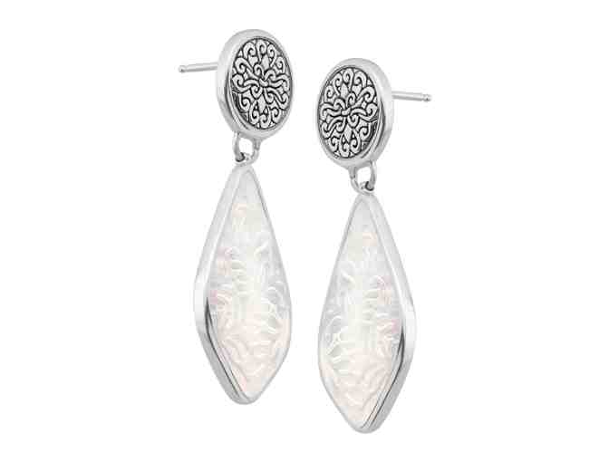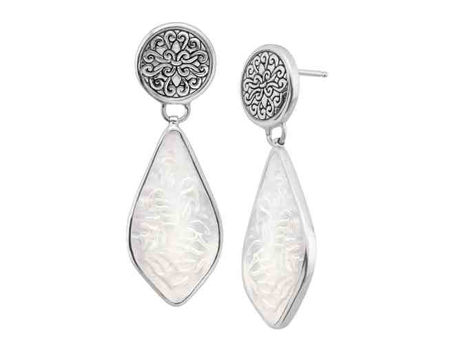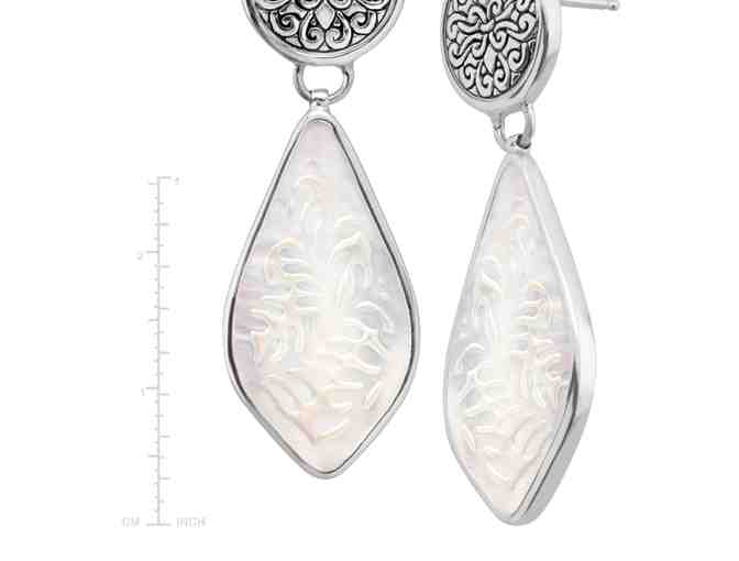 Earrings: Take the plunge into one of Indonesia's most lush and exotic islands, teeming with sun and new adventures. These drop earrings feature natural etched shells suspended from a sterling silver filigree. This piece is part of our Balinese Collection, inspired by the beauty of Southeast Asia and handmade in Bali using ancient silversmith techniques. Earrings measure 1 11/16 by 9/16 inches and feature posts with friction-backs.