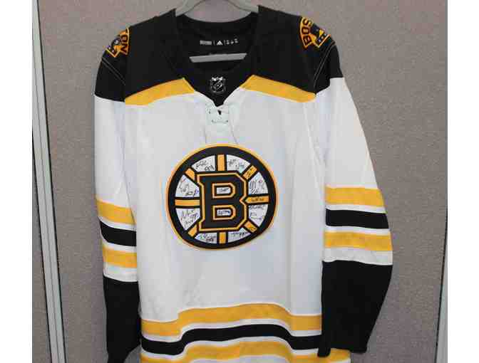 2019-2020 Boston Bruins Team Autographed Jersey. This item was personally signed during a team chariable autograph session in October 2019. Autographs include David Krejci, David Pastrnak, David Backes, Connon Clifton, Chris Wagned, Torey King, etc.