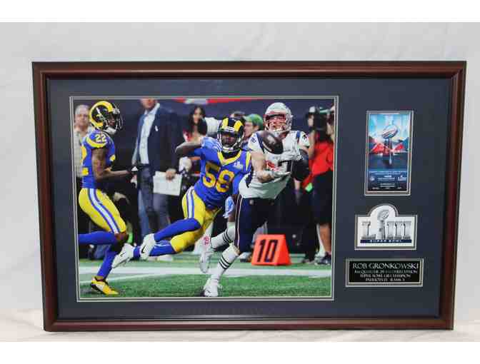 Framed Rob Gronkowski Final Catch Super Bowl 53 with ticket and logo.