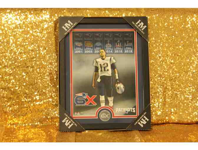 Also, included is a Tom Brady 6X Super Bowl Champion Minted Coin Photo from The Highland Mint. Proudly made in the USA and officially licensed.