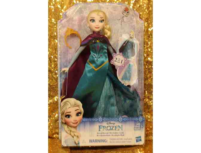 Also, included is a "Disney Frozen" Elsa Doll from Hasbro. Elsa's coronationd dress transorms into a sparkling ensemble.