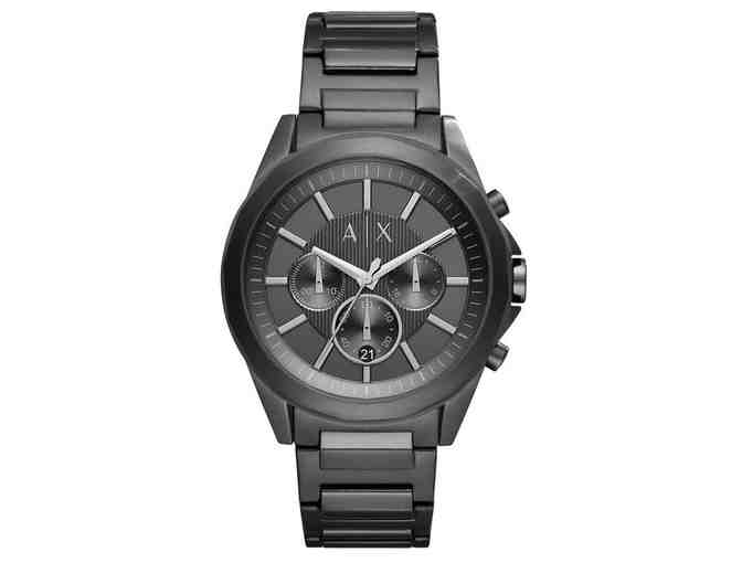 With all the elegance and distinctive style typical of the Italian master, the AX2601 from Armani Exchange is a smart everyday piece. With a black stainless steel case and three link bracelet, the watch has a textured black dial with the brand's logo at 12 o'clock. A classic chronograph, it sports three sub dials and a date window at 6 o'clock. It's a sharp and reliable piece that can be worn with a casual outfit or with a suit. Armani Exchange stainless steel watch• Model no: AX2601• Buckle fastening• Stainless steel case, black dial, three sub dials, date window at 6 o'clock, logo at 12 o'clock, quartz movement, three link stainless steel bracelet• Case diameter: 44mm• Water resistant to 50 metres• Two year manufacturer's warranty. Color: metallic