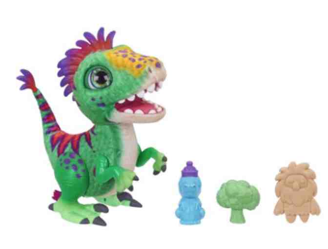 Welcome to the FurReal brand's family of pets - engaging and often surprising friends that can become a child's favorite companion. Unlike other plush toys, furReal pets aren't intended to be merely watched or collected; they're designed to be played with, lived with, and loved. Their exciting and engaging play can help create unforgettable childhood memories. Baby dino = hungry dino. This funny baby dino loves treat time - in fact, he hops and begs with excitement when it's time to eat, and loves to play with his food! His favorite treats are his caveman cookie and, surprisingly, his broccoli. But he's a picky little guy -- he could find these treats yummy or yucky, depending on his mood. Watch his funny reactions! To activate full range of features, move OFF-DEMO-ON switch to ON position, then press down on the tip of pet's tongue.