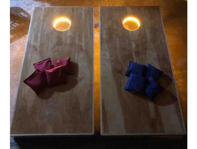 Just because the sun has set, that doesn't mean the fun has to stop! Continue the fun with your friends and family with this lighted corn hole set.