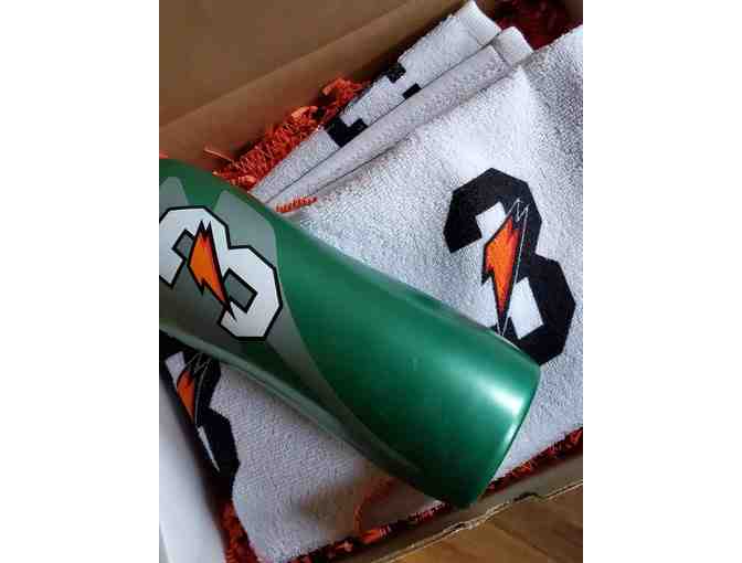 Gatorade created limited towels and squeeze bottles with Wade’s “3” entwined with the iconic Gatorade bolt which were featured on the sidelines of his last regular season game. These were never for sale to the public. Here's your chance to own a hard-to-come-by piece of memorabilia!