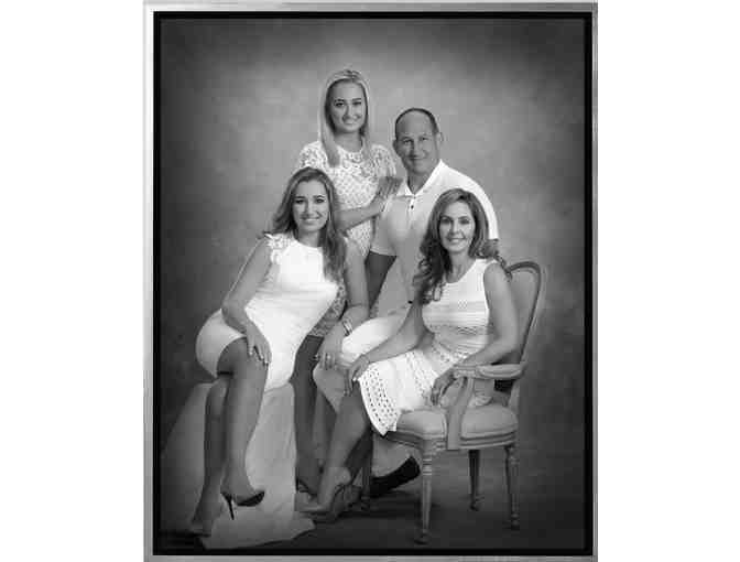 Go for a modern twist with this charming 11” x 14” black and white wall portrait on 100% cotton fine art museum paper with pearl UV protection and artist enhancement. The Platinum Portrait will be created at the Kramer Washington, DC studio at the St. Regis Hotel. A maximum of eight people can be included in this unframed portrait and family pets too!