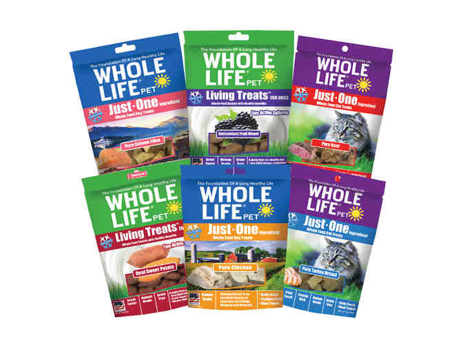 Love your pet with a Gift Basket filled with Whole Life Pet treats and food, customized for either your dog or cat.