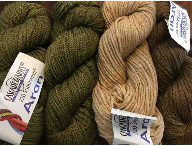 4 Skeins of Cascade 220 Yarn (2 fir green, 1 mocha, 1 sesame)