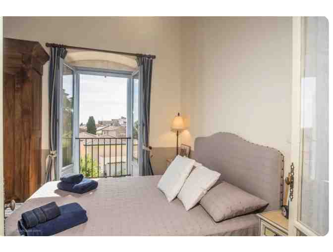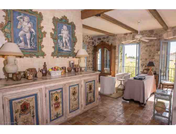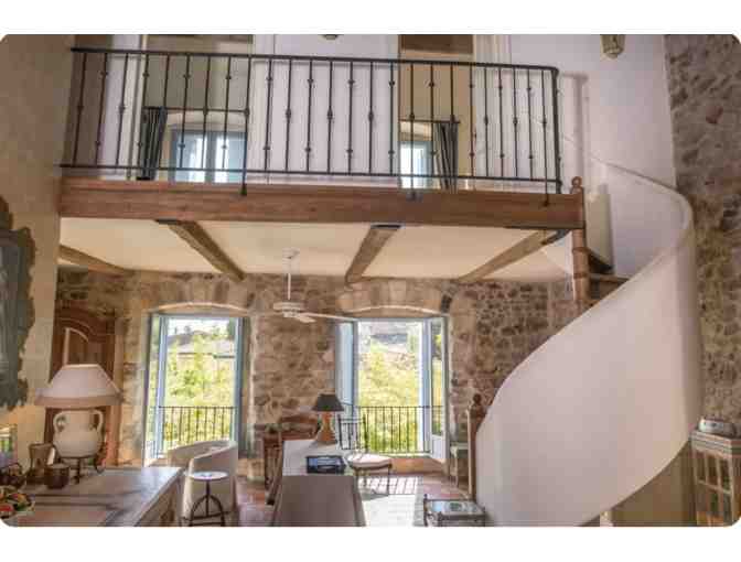 This apartment has high beamed ceilings and an open floor plan giving it a bright, open and airy feel. The many large windows have a lovely view over the village roofs and of the countryside beyond. The house is right in the village center just steps away from the boulangerie, the boucherie, a small grocery store, an organic grocery and cafe, a restaurant with outdoor seating and an ATM machine.