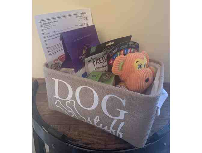 Assortment of dog pet items from Happy Spot Pet Resort.