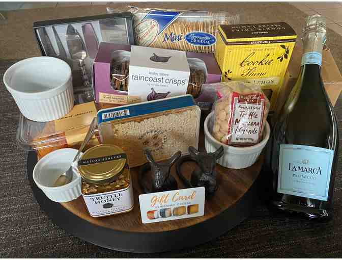 Grab your friends and get ready for an indulgent night in! In this basket you will find everything you need to put together an elegant and delicious charcuterie platter. From a Venissimo Cheese Shop gift card to the adorable bronze mice, you will be able to put together an absolutely unforgettable charcuterie experience!