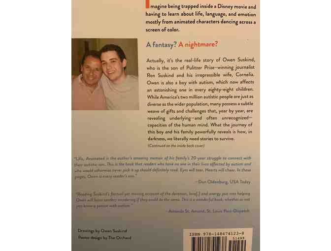 When Pulitzer Prize winning author Ron Suskind's son Owen was diagnosed with autism and became non-verbal as a young child, Suskind and his family went in search of connection. With the help of Disney film and characters, a team of experts, and a lifetime of dedication, they found their way and Owen emerged. A powerful story of love and devotion, now an Academy Award nominated documentary. This brand new soft cover edition is autographed by Jonathan Freeman - the actor who voiced Jafar in the film Aladdin and has played him on Broadway since the show opened - a good Friend of Owen.