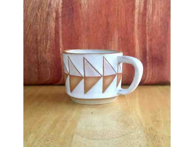 Beautiful ceramic mug- made with love by former Craftshop Director Nelle Horsley. Food and dishwasher safe, perfect for everyday use as your coffee or tea cup. See photo for scale.