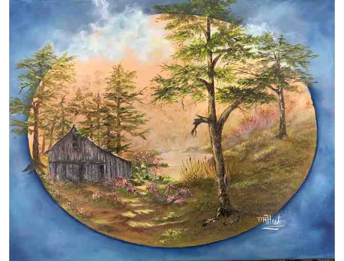 This beautiful 18" x 24" oil on canvas painting is ready to grace a wall at your home. Peaceful and relaxing, you'll wish you can step into this artwork for a time. Painted by local artist, Marianne Hester.