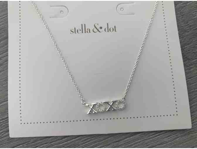 Hand set pavé, beautiful silver plated XOXO necklace.