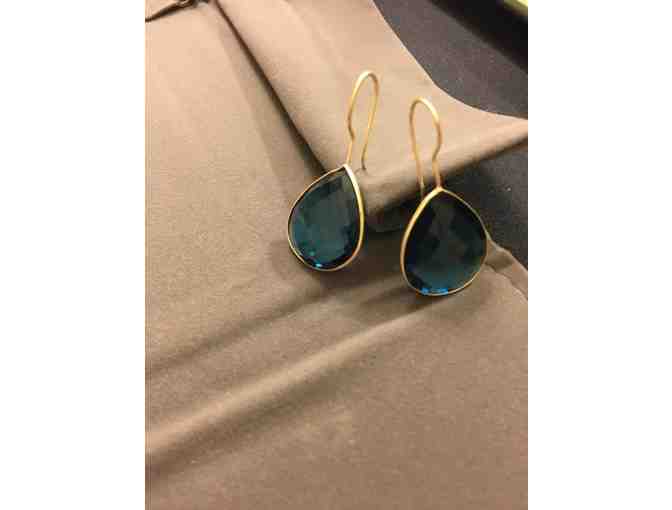 This pair of Erin Gallagher statement earrings, gold filled with dazzling deep London blue turquoise, almost 2 inches from the lobe are perfect for date night or a night out with your friends. Comfortable and light, they come in their own velvet box, new and unworn, great for safekeeping or gift giving.