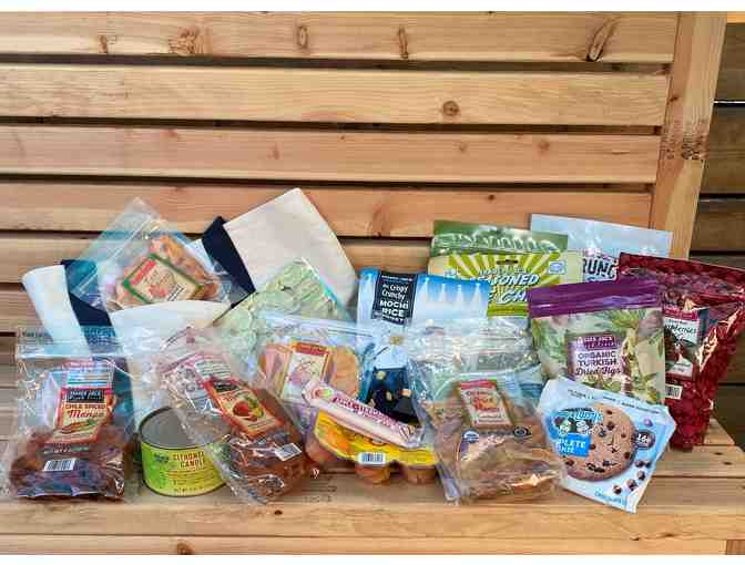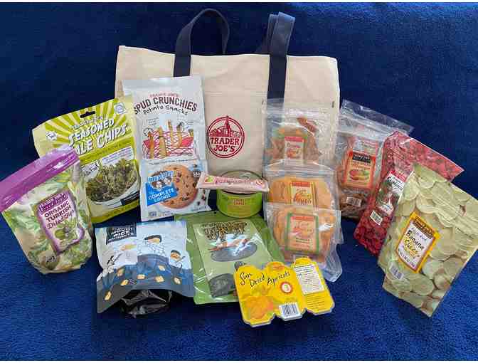 A delicious assortment of snacks from Trader Joe's! Perfect for quick bites and entertainment spreads. Includes a reusable shopping tote for easy storage and transportation.