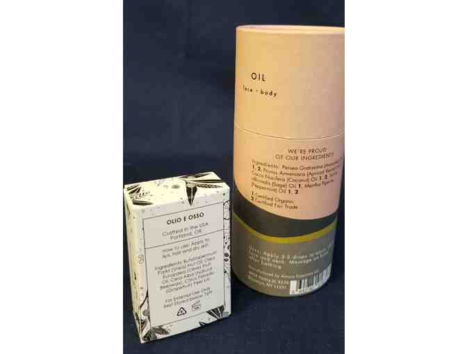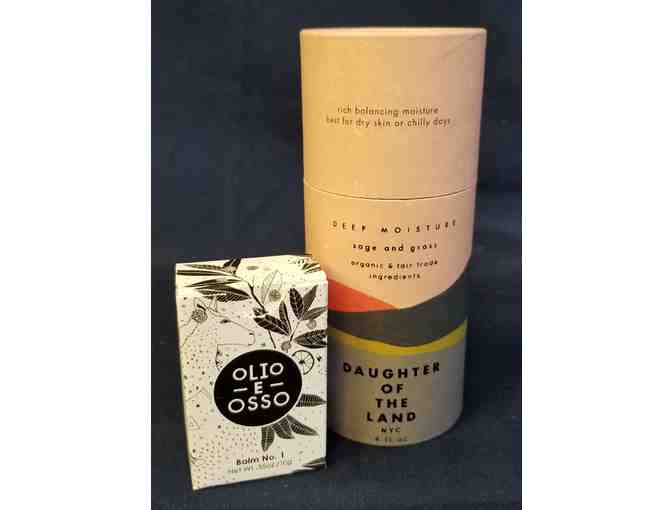 Pamper yourself with this body and face oil made with sage and grass. The lip balm is pure and simple.
