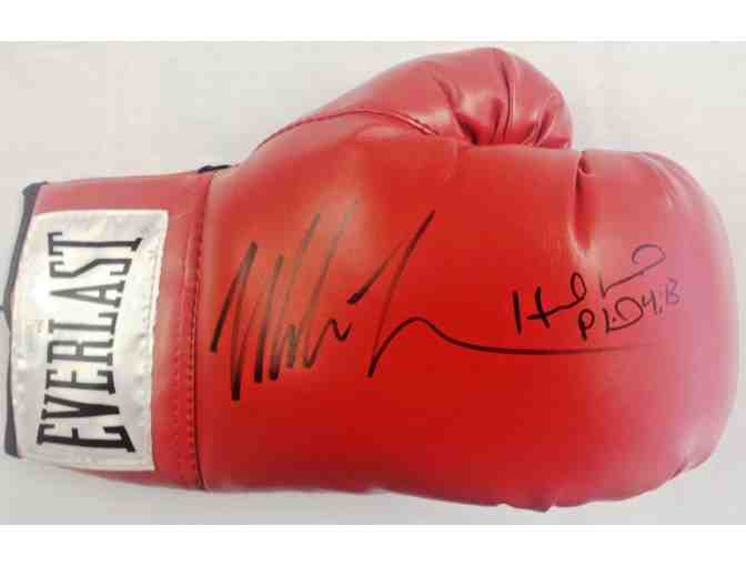 Mike Tyson Evander Holyfield Autographed Boxing Glove. Comes with certificate of authenticity.