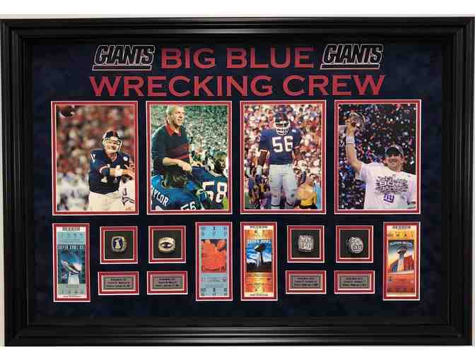 Framed Shadowbox of 4-Time Super Bowl Champion New York Giants with Replica Tickets and Replica Super Bowl Rings