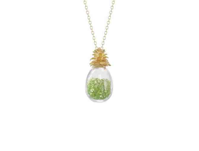 Alive with vibrant color and dynamic movement, this tiny pineapple has big personality. A must-have for a trip to the islands or for elevating an everyday outfit to an eye-catching ensemble. Choose from a varied palette of free-floating colored crystals or peridot. The hollow glass chamber is vertically held by a delicate piece of organically styled 18K gold vermeil.