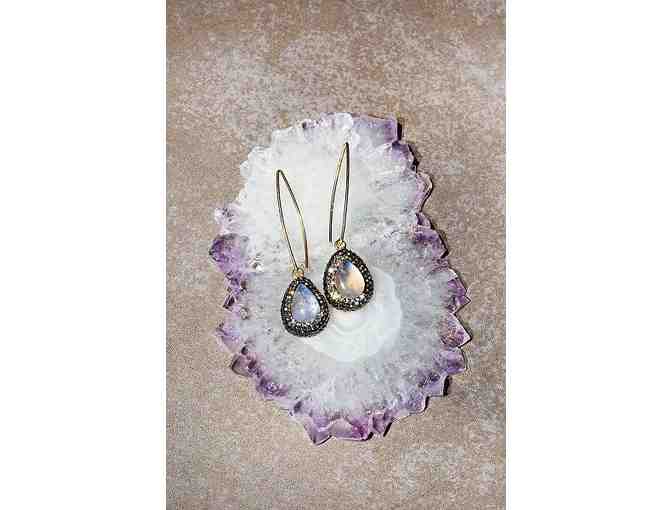 Rainbow Moonstone & Yellow gold Vermeil Vhook earrings