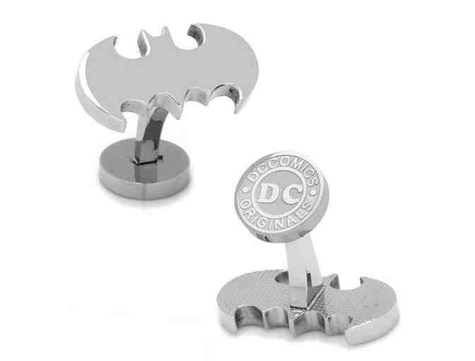 These pure stainless steel batman cufflinks have the batman logo on the front side and the DC comics logo on the back.