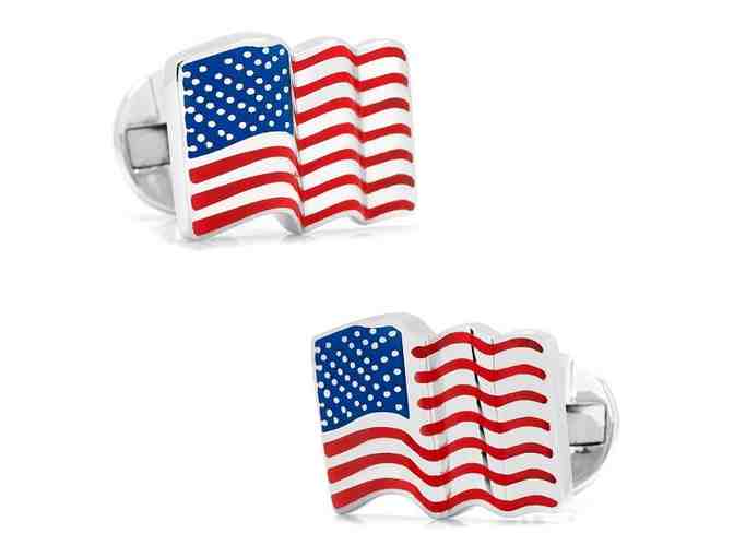 Sterling Silver Waving American Flag Cufflinks